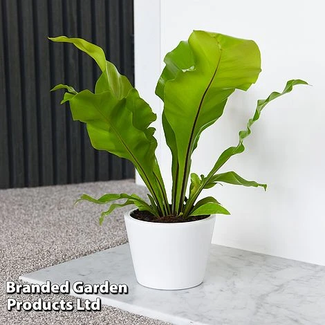 An ideal choice for shadier rooms, north or east facing windowsills or bathrooms, this tough fern is an undemanding houseplant. Asplenium nidus bears bright green, sword-like fronds with prominent black midribs. Fresh young fronds are continually produced from the basal rosette, replacing older leaves. Its clean outlines are elegantly simple, and it also has the benefit of being a good air purifier. Maximum height: 1.5m (60in). Spread: 1m (40in).