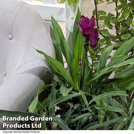 The award-winning Curcuma ‘Skyline’ is distinguished by its especially large and showy inflorescences. From late spring to summer, tall, single stems burst into glowing pink torches that can remain in flower for an incredible two months. The bracts are surrounded by erect, lance-shaped leaves, the whole plant having a narrow, upright habit that makes it a perfect focal plant for narrow spaces. Alternatively, use it to inject some dynamism and tropical colour into larger houseplant arrangements. Height: 60cm (24in). Spread:20cm (8in).