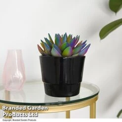 Tradescantia zebrina is a particularly eye-catching house plant. The trailing stems are covered with extraordinary silver-striped leaves, each with a shocking-pink underside. This cheery little plant will happily spill over the sides of its pot to create a cascade of colour. If that’s not enough, then it will also produce pretty purple-pink flowers sporadically throughout the year, which always come as a lovely surprise. Reliable and easy to grow, this Silver Inch Plant makes a great choice for an indoor hanging basket. Height and spread: 40cm (16″).
